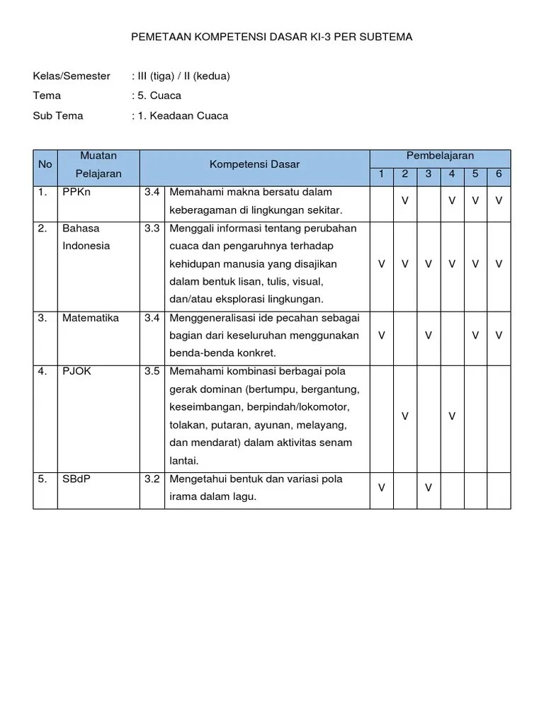 Pemetaan ki kd pjok kls 5 sd semester 1 dan 2 revisi 2019 untuk lenbih .
